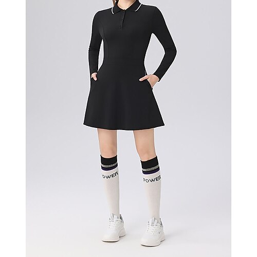 Per donna Tinta unita Abito da tennis con pantaloncini Abito sportivo Manica Lunga Tasca Elastico Traspirante Tennis Corsa Fitness Colletto Polo Vestito Nero Bianco Vino Abbigliamento da tennis