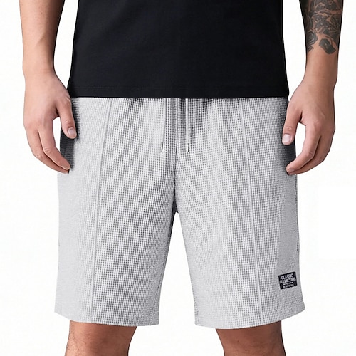 Per uomo Pantaloncini Waffle Shorts Shorts da Spiaggia Pantaloncini casual Tasca Elastico in vita Semplice Comodità Traspirante Lunghezza al ginocchio Casuale All'aperto Spiaggia Vacanza Moda Nero