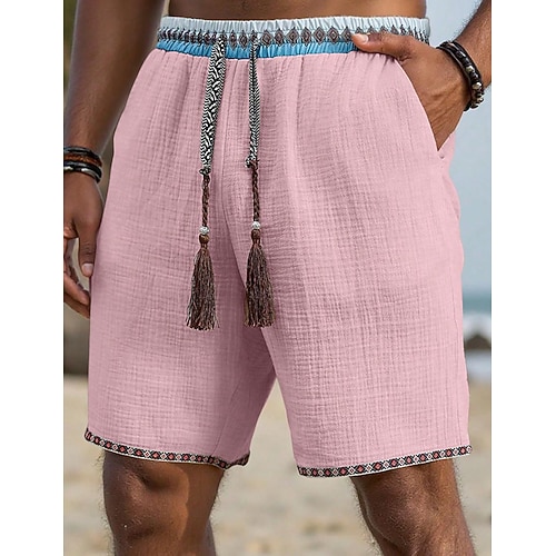 Per uomo Shorts Shorts di Lino Pantaloncini Estivi Shorts da Spiaggia Tasca Elastico in vita Coulisse A righe Comodità Traspirante Corto Vacanza Ferie Spiaggia Hawaiano Boho Nero Bianco