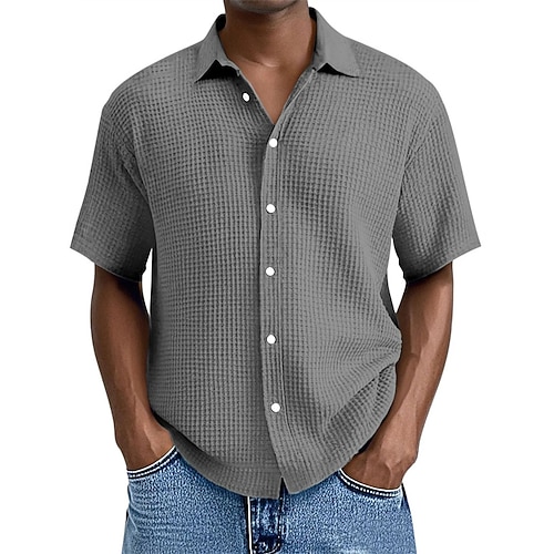 Per uomo Camicia Camicia a nido d'ape Camicia Estiva Camicia casual Camicia da Spiaggia Camicia con Bottoni Nero Bianco Verde chiaro Rosa Blu reale Manica Corta Semplice Bavero Vacanza Camicia