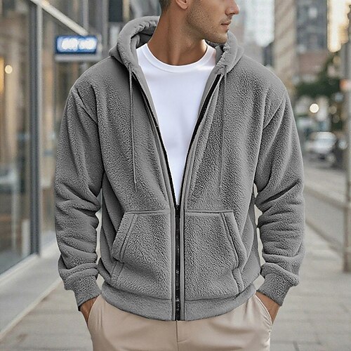 Per uomo Felpa con zip Felpa con cappuccio in pile Felpa con cappuccio in pile Sherpa Nero Blu marino Cachi Grigio Con Cappuccio Semplice Con zip Tasca Frontale Sport Outdoor Casuale Quotidiano