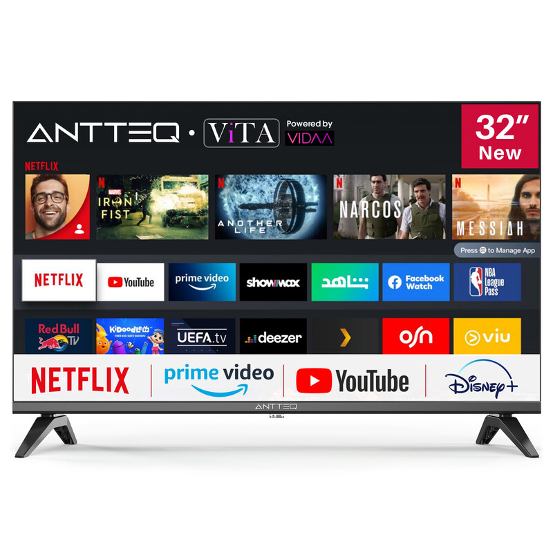 ANTTEQ VIDAA TV | LED HD | 32 Zoll/82 cm | Rahmenlos Design | Tripple Tuner DVB-T/T2/S/S2/C | HDMI x3, USB x2, CI+ | Sprachsteuerung & Streaming-Apps | Montiert in Eindhoven | V32-AH3.Q1L