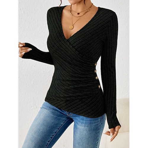 Per donna Blusa Tinta unica Elegante Vintage Essenziale Manica Lunga Scollo a V Top Regolari Quotidiano Nero Verde militare Blu Viola Primavera Autunno Inverno