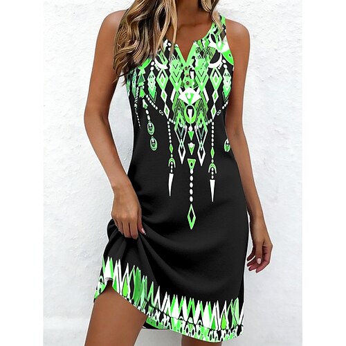 Per donna Mini Abito Vestito Estivo Abito a Tubino Abito Estivo Abito a spalle scoperte Vacanza Casual Quotidiano Ferie Uscire Vestibilità regolare Grafico Tribale Astratto Senza Maniche Scollo a V