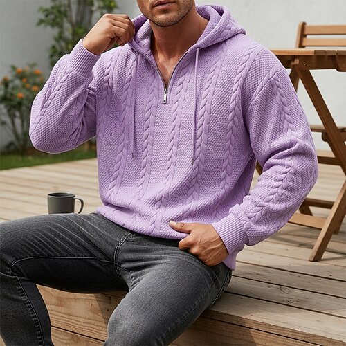 Per uomo Jacquard Felpa con cappuccio Felpa con cappuccio e zip corta Aalbicocca Nero Bianco Verde chiaro Vino Con Cappuccio Semplice Con zip Testurizzato Casuale Quotidiano Sport Outdoor