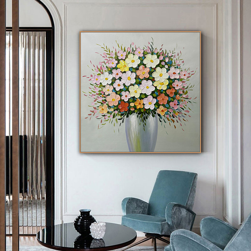 Mintura Handmade Flower Oil Paintings On Canvas Wall Art Decoration Modern Abstract Picture For Home Decor Rolled Frameless Unstretched Painting