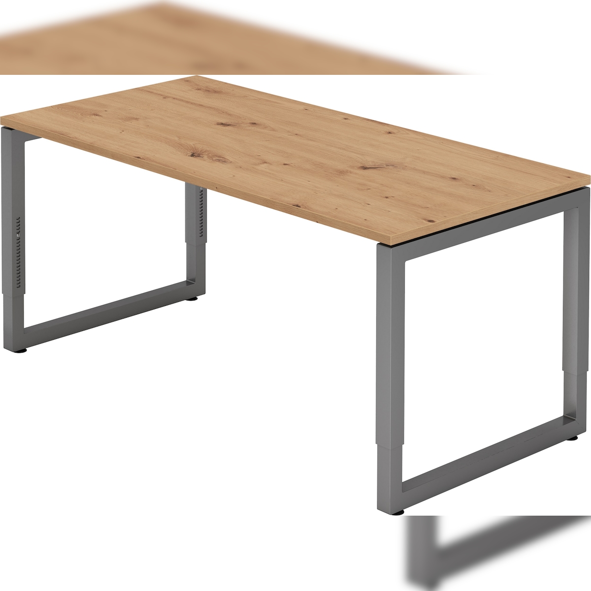 bümö höhenverstellbarer Schreibtisch R-Serie 160x80 cm in Asteiche, Gestell in Graphit - PC Tisch für's Büro manuell höhenverstellbar, Computertisch