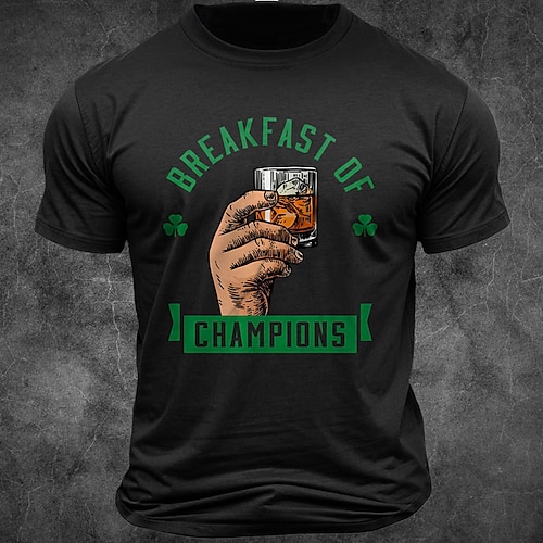 Festa di San Patrizio Per uomo Quadrifoglio Stampa Lettere Divertente Maglietta 100% Cotone Manica Corta Grafico Camicia Nero Verde militare Maglietta comoda Vacanza Streetwear Abbigliamento di