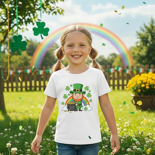 100% Cotone Giorno di San Patrizio Bambini Ragazze Blu Nero Bianco Grafico Trifoglio Giorno di San Patrizio Maglietta Girocollo Manica Corta Vacanza Sport Outdoor Abbigliamento Quotidiano Vacanza