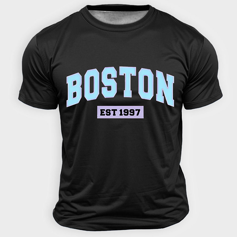 Men's Boston T Shirt Short Sleeve T shirt 3D Print Crew Neck Shirt Fashion Daily Basic Street Casual Daily Light Blue Black White Summer Spring Clothing Apparel S M L XL XXL XXXL