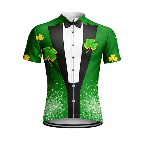 Da uomo Maglia di San Patrizio Maglia da Ciclismo Maglia da downhill Quadrifoglio T-shirt da uomo Smoking Manica Corta Bicicletta Maglia Maglietta Top con 3 tasche posteriori Resistente ai Raggi UV