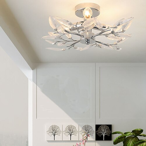 lampadario a sospensione, lampade a sospensione a 2 luci con forma a ramo di foglia trasparente, plafoniera moderna da incasso da 45 cm compatibile con soggiorno, cucina, camera da letto,