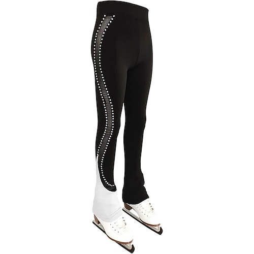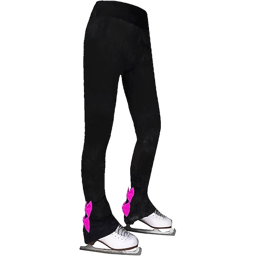 pantaloni da pattinaggio artistico da donna e da ragazza, pantaloni da pattinaggio sul ghiaccio, neri, elastici, abbigliamento da pattinaggio per gare di allenamento, termici, caldi, con