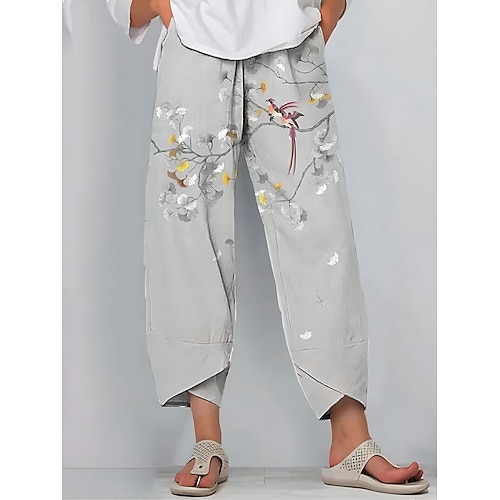Per donna Gamba larga Chinos Pantaloni Larghi Vintage Essenziale Casual Lunghezza alla caviglia Vita Alta Floreale Grafico Coulisse Patchwork Stampa Traspirante Inelastico All'aperto Vacanza