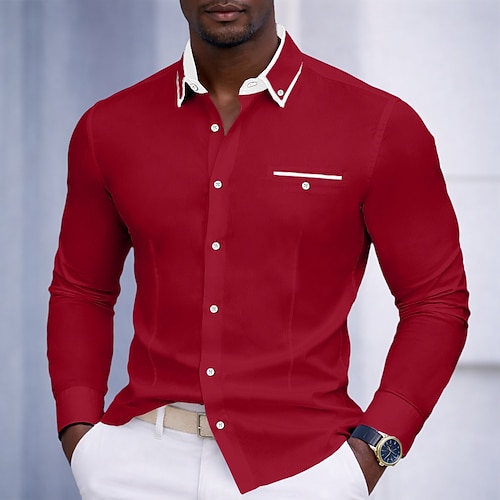 Per uomo Camicia Camicia elegante Camicia button-down Blocco di colori Quotidiano Affari Blu chiaro Nero Bianco Rosa Manica Lunga Collo ripiegato Tutte le stagioni Abbigliamento Patchwork