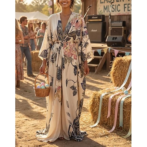 Per donna Abito Midi Abito da Cocktail Abito Floreale Abito Boho Moda Moderno Vacanza Tè Uscire Vestibilità regolare Fiore Senza Maniche Scollo a V Blu Nero Vino Verde scuro Estate