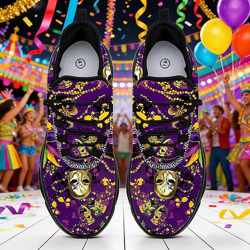 Damen Mardi Gras Konfetti-Print Schnür-Canvas-Sneakers - Stilvolle Komfort Freizeitschuhe für Karnevalsumzüge Freizeitparkbesuche Straßenfeiern und sommerliche Ausflüge
