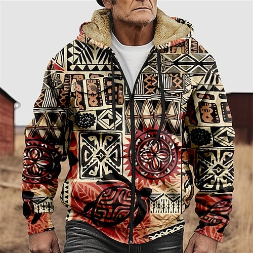 Per uomo Grafico Felpa con Cappuccio Giacca di pelle Moda Etnico Casual Manica Lunga Con Cappuccio All'aperto Sport all'Aperto Uscire Marrone chiaro Arancione scuro Rosso Arancione Marrone Tasca