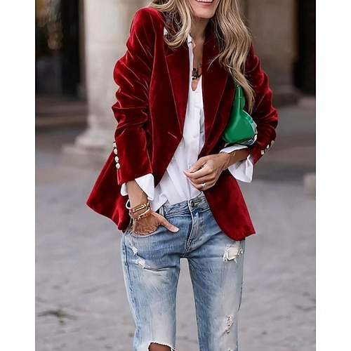 Per donna Blazer Blazer di velluto Confortevole Bottoni Moda Semplice All'aperto Formale Regolare Collo ripiegato Vestibilità regolare Manica Lunga Capispalla Blu Nero Rosso Autunno Inverno