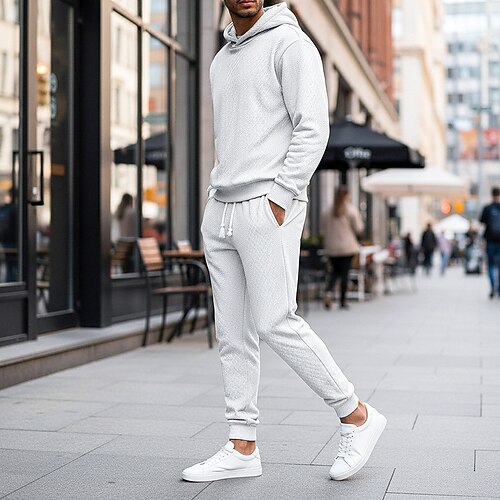 Per uomo Tuta da Ginnastica Set di abiti Set di felpe con cappuccio Felpa con Cappuccio All'aperto Quotidiano Sportivo Jacquard Coulisse Semplice Nero Bianco Cachi Abbigliamento sportivo Moda