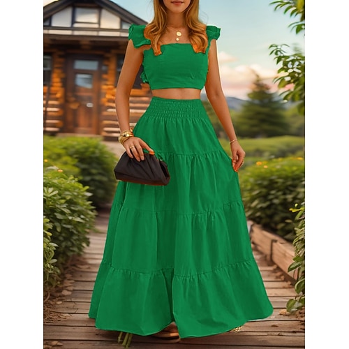 Per donna Set di gonne Senza Maniche Collo quadrato Semplice Arricciato Elegante Moda Streetwear Casuale Quotidiano All'aperto Nero Bianco Giallo Estate Vestibilità regolare