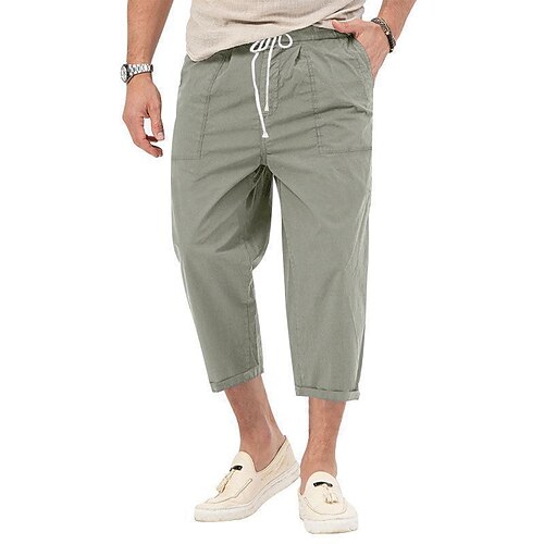 Per uomo Pantaloni corti Pantaloni da spiaggia Pantaloni casual Tasche A cordoncino Vita elastica Liscio Comfort Alla caviglia Sportivo Giornaliero Di tendenza Informale Nero Bianco Media elasticità