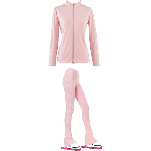 giacca da pattinaggio artistico con pantaloni, abbigliamento da pattinaggio sul ghiaccio da donna e da ragazza, nero, elastico, abbigliamento da pattinaggio per competizione, termico, caldo, con