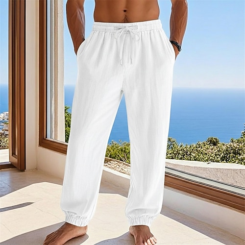 Per uomo Pantaloni di Lino Pantaloni Pantaloni Estivi Coulisse Elastico in vita Semplice Comodità Traspirante Casuale Quotidiano Ferie Moda Stile Classico Nero Bianco