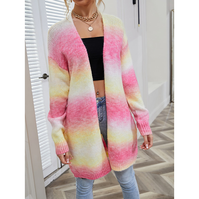 Women's Sweater Cardigan Elegant Fashion Streetwear Color Gradient Open Front Pocket Knitted Print Long Sleeve Regular Tops Knit Outdoor Daily Weekend Yellow Pink Spring Fall