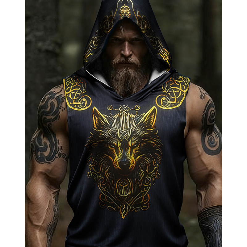Men's Tank Top Vest Top Undershirt Sleeveless Shirt Sleeveless Hooded Summer Wolf Vintage Designer Basic Print Vacation Street Going out Black Blue Gray Top Tee for Men