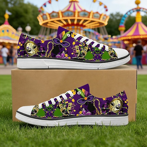 Damen-Sneaker aus Canvas mit Mardi-Gras-Konfetti-Print und Schnürung – stylische und bequeme Freizeitschuhe für Karnevalsumzüge, Ausflüge in den Vergnügungspark, Straßenfeste und sommerliche Alltagsbeschäftigungen