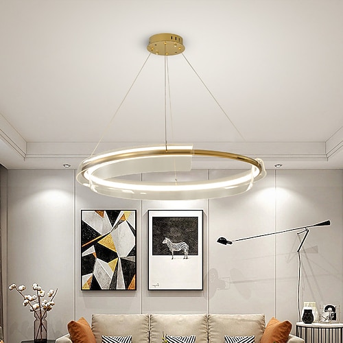 Plafoniera a LED a 1 luce con design ad anello circolare, finiture in alluminio e vetro verniciato, stile moderno e lussuoso, ideale per sala da pranzo e camera da letto, 110-240 V.