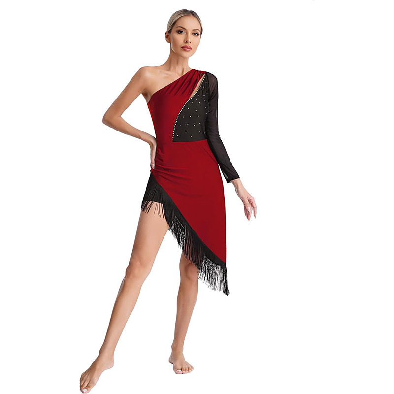 Women's Salsa Latin Dance Dress Shiny Rhinestones Fringe Flapper Party Dress Ballroom Dance Costume