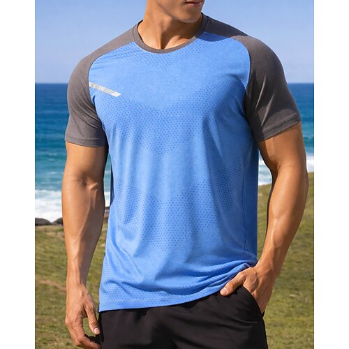 Per uomo Blocco di colori T-shirt da corsa Maglia a compressione Maglia atletica Sport in alto Estate Patchwork Manica Corta Asciugatura Rapida Leggero Traspirante Allenamento in Palestra Camminata