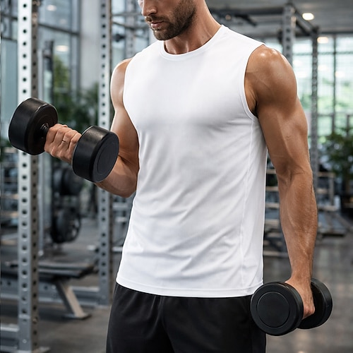 Per uomo Tinta unita Canotta da allenamento Canotta da corsa Sport in alto Estate Senza Maniche Asciugatura Rapida Leggero Traspirante Palestra Allenamento in Palestra Corsa Camminata Jogging Bianco