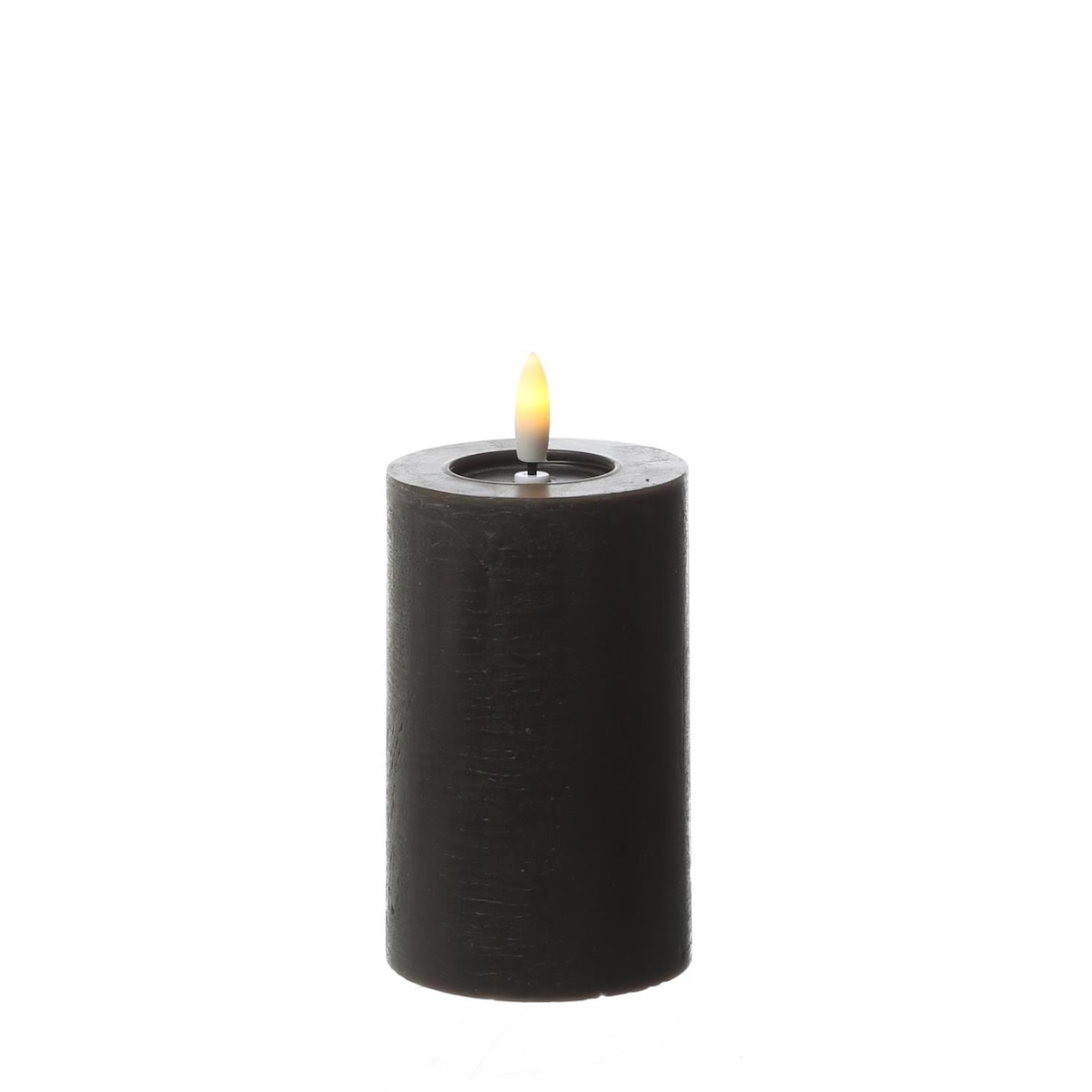 441 LED Kerze LINA Rustik Optik Echtwachskerze schwarz flackernd Timer 7x11cm