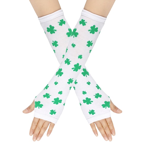 guanti da donna in maglia per il giorno di San Patrizio, a righe verdi e bianche con motivo a trifoglio, perfetti per il giorno di San Patrizio, il carnevale e l'uso quotidiano