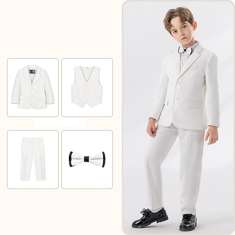 4 Pieces Ring Bearer Suit Boys' Kids Suit Blazer Vest Pants Tie Boy's Formal Suit Casual Outdoor Party Fashion Cool Basic Solid Color Pocket Buttons Blue White Wine Polyester