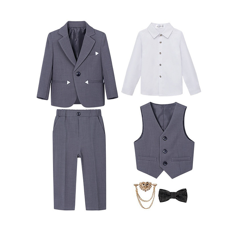 6 Pieces Ring Bearer Suit Boys' Kids Suit Blazer Vest Pants Shirt Tie Boy's Formal Suit Casual Outdoor Party Fashion Cool Basic Solid Color Pocket Buttons Black Khaki Gray Polyester