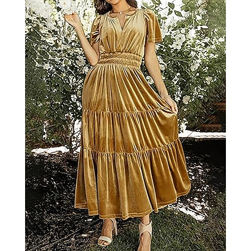 Per donna Abito Midi Abito di Natale Abito in Velluto Vestito da Festa Abito da Cocktail Elegante Moderno Festa serale Feste Compleanno Vestibilità regolare Semplice Manica Corta Scollo a V Vino