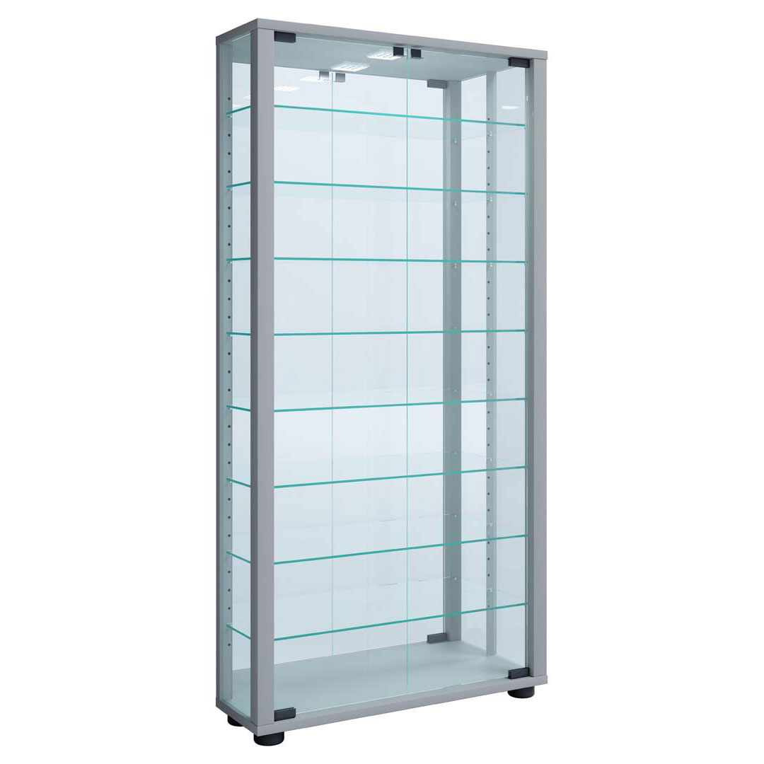 Vitrine GOODPRODUCT "DENIS75, 5 Fächer, Teilmassiv, 1 Tür mit Glaseinsatz, grifflos", braun (eiche teilmassiv), B:65cm H:190cm T:40cm, Holz teilmassiv, Schränke, Vitrine, B/T/H:65/40/190cm, Einlegeboden teilwese verstellbar, Eiche geölt. eiche teilmassiv