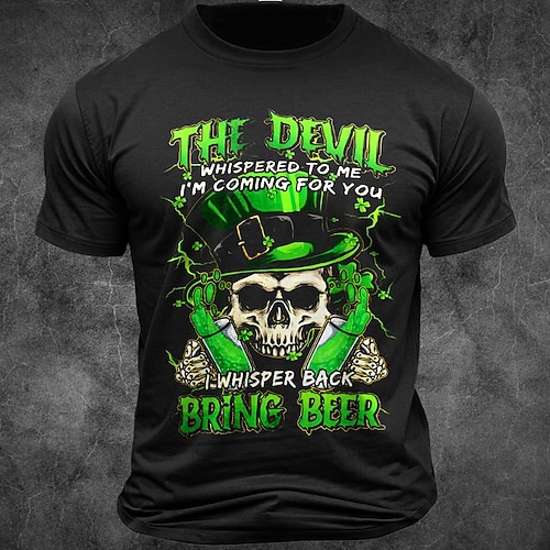 Festa di San Patrizio Per uomo Quadrifoglio Birra Maglietta 100% Cotone Manica Corta Grafico Camicia Nero Verde militare Blu scuro Maglietta comoda Streetwear Ferie Abbigliamento di stilista