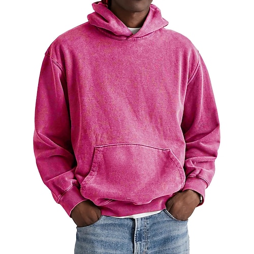 Felpa vintage da uomo, 100% cotone, con cappuccio, lavaggio acido, albicocca, nero, rosa, rosso, semplice, con tasca, sportiva, per attività all'aperto, quotidiano, vacanza, basic, casual, autunno, inverno, abbigliamento