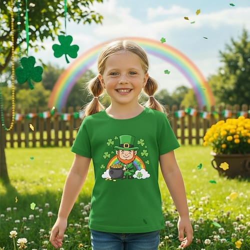 100% Cotone Giorno di San Patrizio Bambini Ragazze Blu Nero Bianco Grafico Trifoglio Giorno di San Patrizio Maglietta Girocollo Manica Corta Vacanza Sport Outdoor Abbigliamento Quotidiano Vacanza