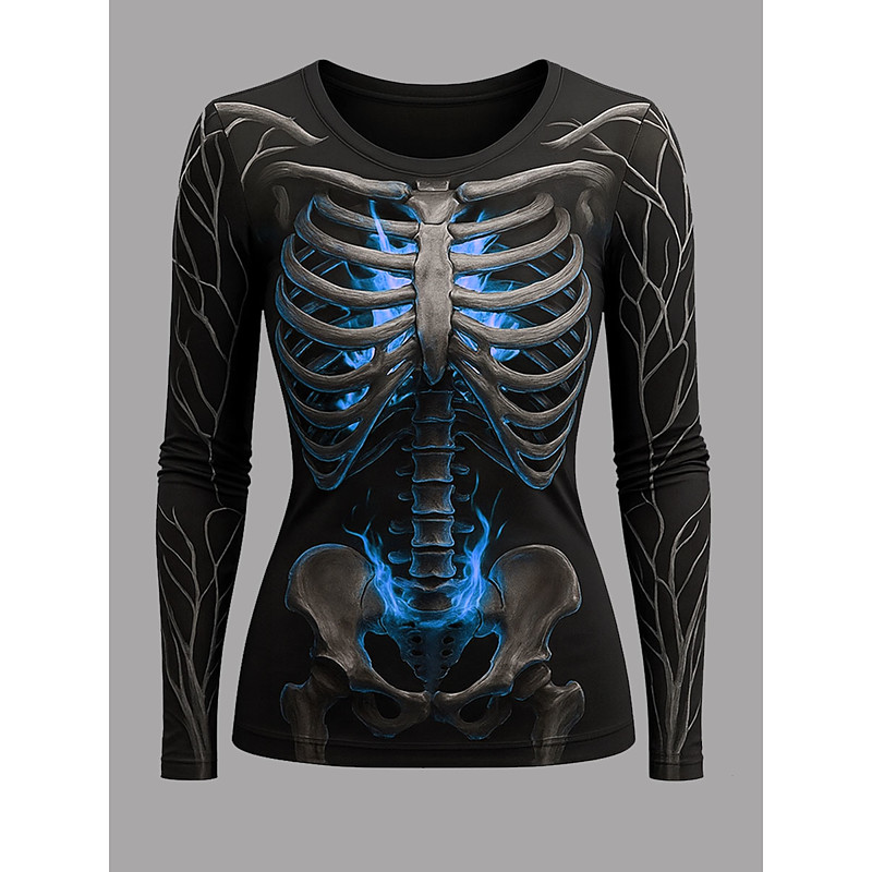 Women's T Shirt Skulls Graphic Skeleton Vintage Fashion Stylish Long Sleeve Crew Neck Regular Tops Daily Weekend Print Yellow Pink Blue Green Spring Fall Winter