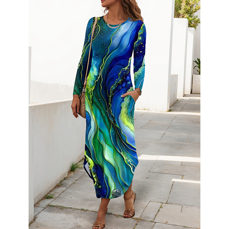 Women's Maxi Dress T Shirt Dress Tee Dress Casual Daily Going out Regular Fit Graphic Geometric Long Sleeve Crew Neck Yellow Blue Purple Green Summer Spring Fall