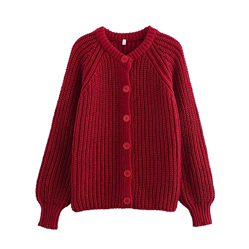 Per donna Felpa Cardigan Streetwear Casual Tinta unica Girocollo Bottoni Lavorato a maglia Manica Lunga Top Regolari Maglia Quotidiano Ferie Uscire Rosso bordeaux Nero Autunno Inverno