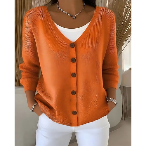 Per donna Normale Cardigan Elegante Tinta unica Scollo a V Lavorato a maglia Manica Lunga Maglia Nero Rosa Autunno Inverno