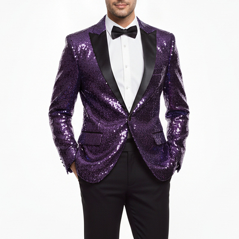 Men's Blazer Jacket Closure collar Party Solid Colored Blazer Black Silver Champagne Tailored Fit Single Breasted One-button