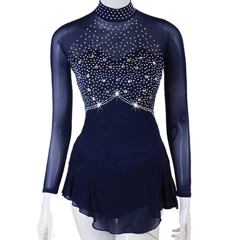 Figure Skating Dress Women's Girls' Ice Skating Dress Outfits Yellow Dark Red Dark Navy Patchwork Mesh Spandex High Elasticity Practice Professional Competition Skating Wear Crystal / Rhinestone